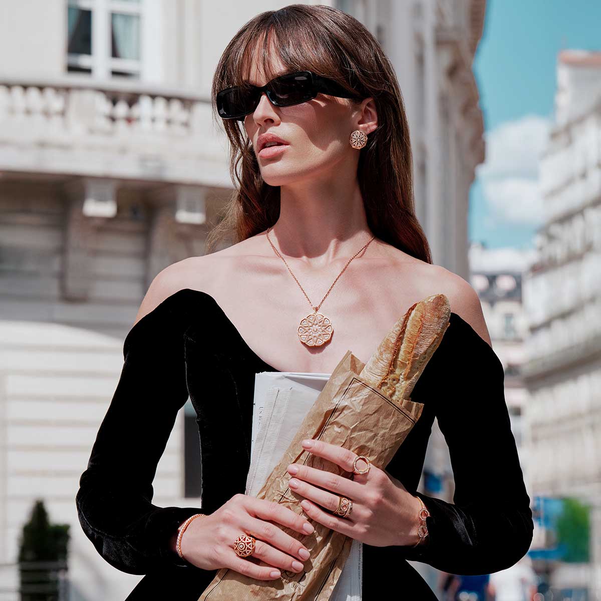 ذهب زهري عيار 18 قيراط، ماسات لمّاعة، عرق اللؤلؤ