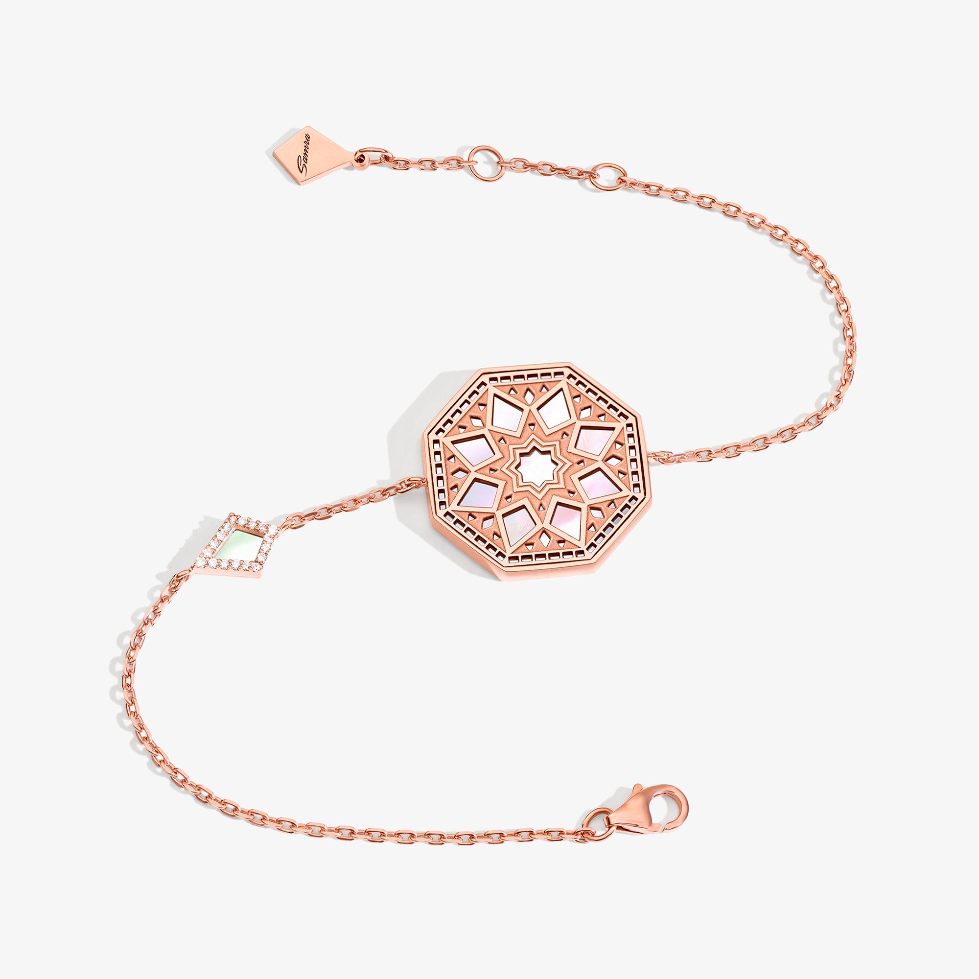 مستوحاة من الفنّ الأصيل الذي يجسّد التاريخ والتراث، جاءت مجموعة تراث لتعيد ابتكار الفنّالكلاسيكي وتقدّم الفنّ والهندسة بمفهوم جديد. اكتشفوا السوار الفضفاض من مجموعةتراث، المصمم من الذهب الزهري اللون عيار 18 قيراط وعرق اللؤلؤ والماس. استكمليإطلالتك وتزيني بهذا السوار الفضفاض من مجموعة تراث وسواها من عناصر المجموعة. صنعهذا السوار الفضفاض من الذهب الزهري اللون عيار 18 قيراط، ومن عرق اللؤلؤ والماسات اللماعة عيار 0.048 قيراط، وله سلسلة طولها 17.5 سم، وهو من إنتاج الإمارات العربية المتحدة