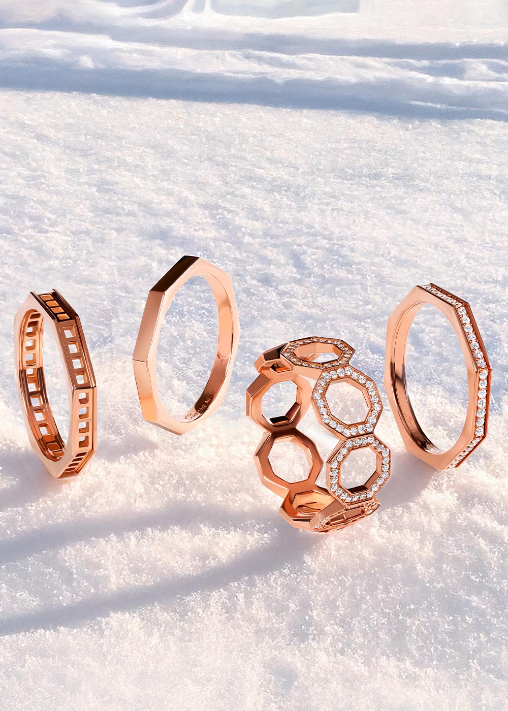 احتضنوا سحر التنوّع مع مجموعة دبلة تراث، حيث تتحوّل الخواتمإلى لوحات فنية تُعبّر عن الذات. مستوحاة من سلاسة الأنماط الهندسية، تمنحكم هذه المجموعة إمكانيات لا متناهية من التكلّف والأناقة