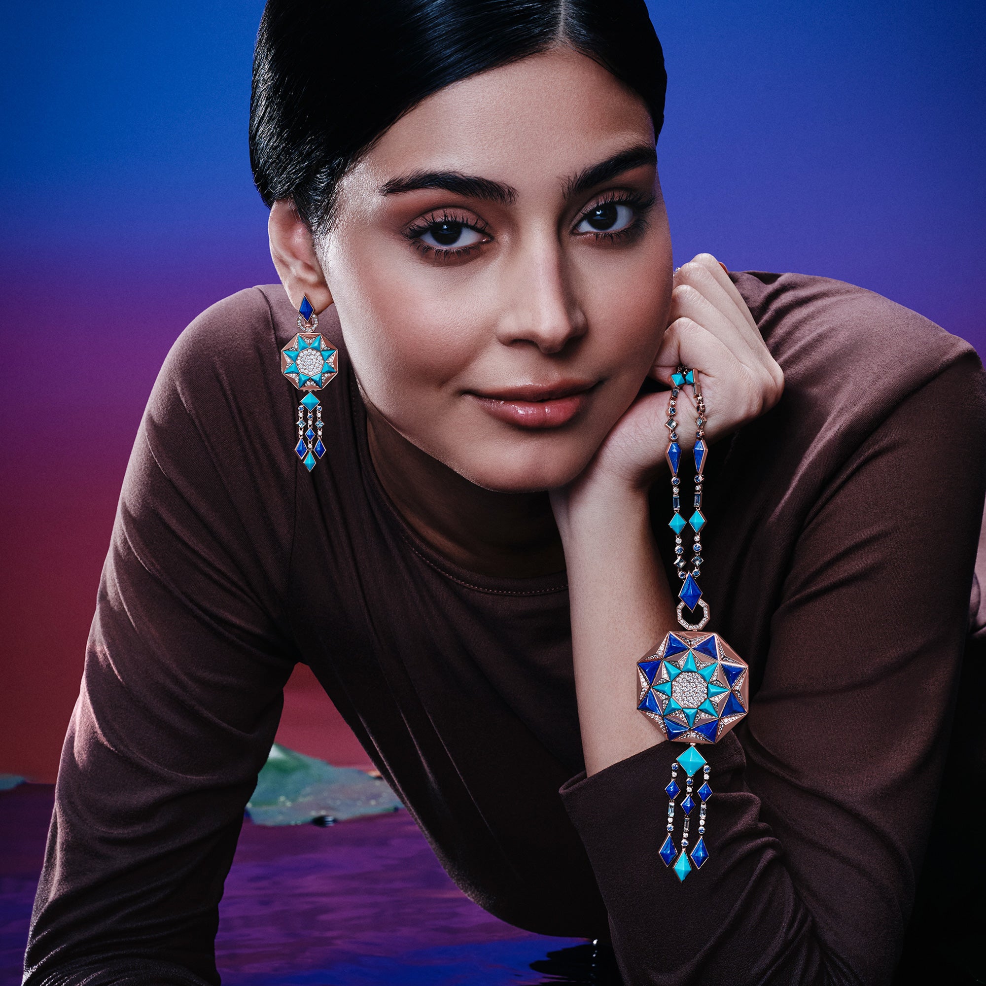 أيقونة معمارية متجسدة في هيئة فنٍّ قابل للارتداء، يستلهم تناظر واجهات القصور