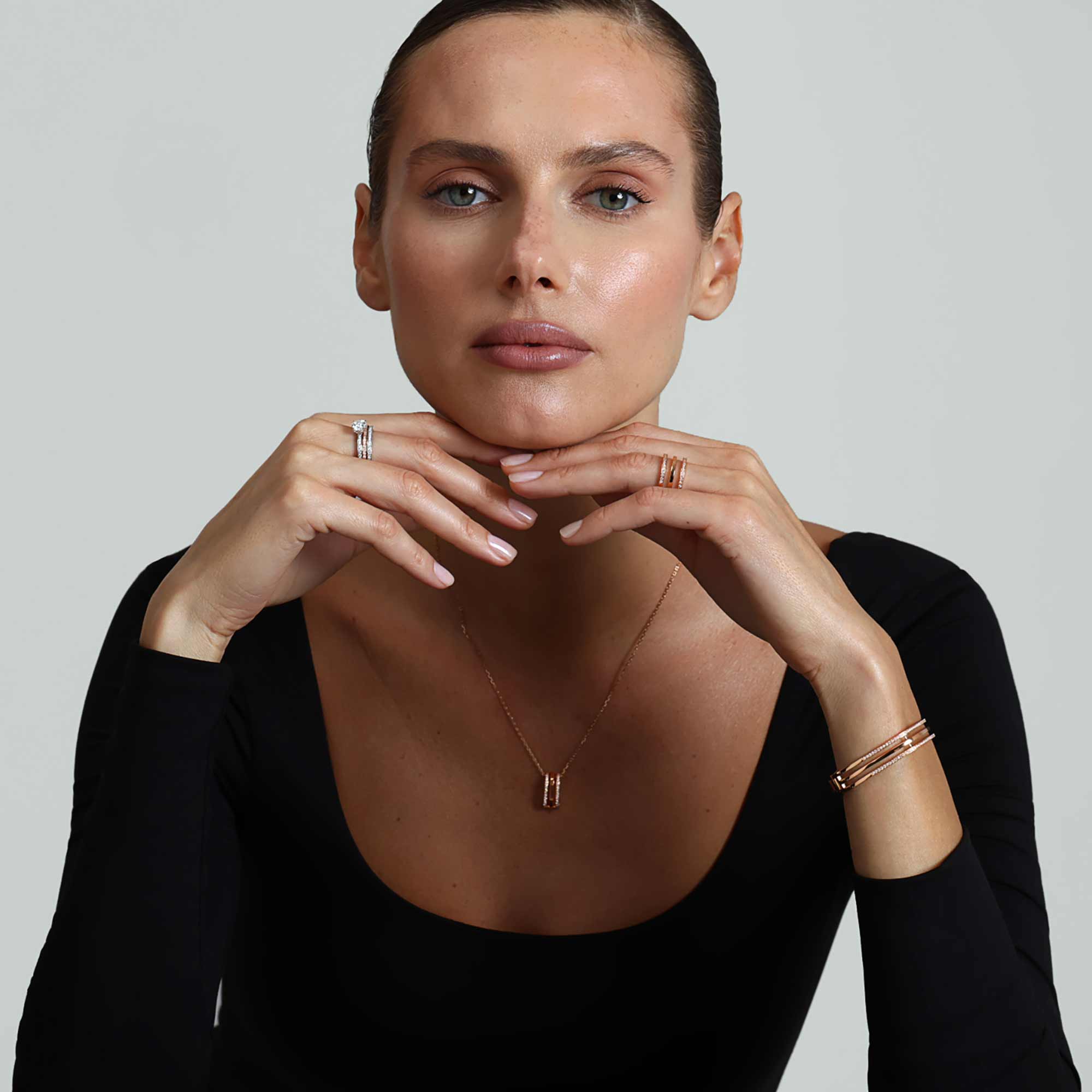 رمز للعشق الأبدي والحبّ الذي لا ينطفىء، مجموعة تحتفي بانسيابية الحبّ ومشاعره عبر أعلى مستويات الحرفية. ففي أتولييه سمره، دأب الفنانون الحرفيون على نحت سيمفونية النور، فعكسوا جوهر الحبّ والشغف وتراقصت الماسات البديعة على حلبة الذهب البراق. تكريسًا للأناقة الهندسية والأشكال المكعّبة، تأتي مجموعة مجوهرات ودّ لتمنح رموز السلطان الأنثوي بعداً آخر. واحتفاءً بأبعاد الحب المتعدد الأوجه والزوايا، يتجلّى عمق التفاني من خلال تصاميم تتوجه لمن يحمي الحبّ ويصونه كجوهرة ولا أثمن صُمم هذا الخاتم من الذهب الزهري عيار 18 قيراط، ومن ماسات لماعة عيار 0.50 قيراط