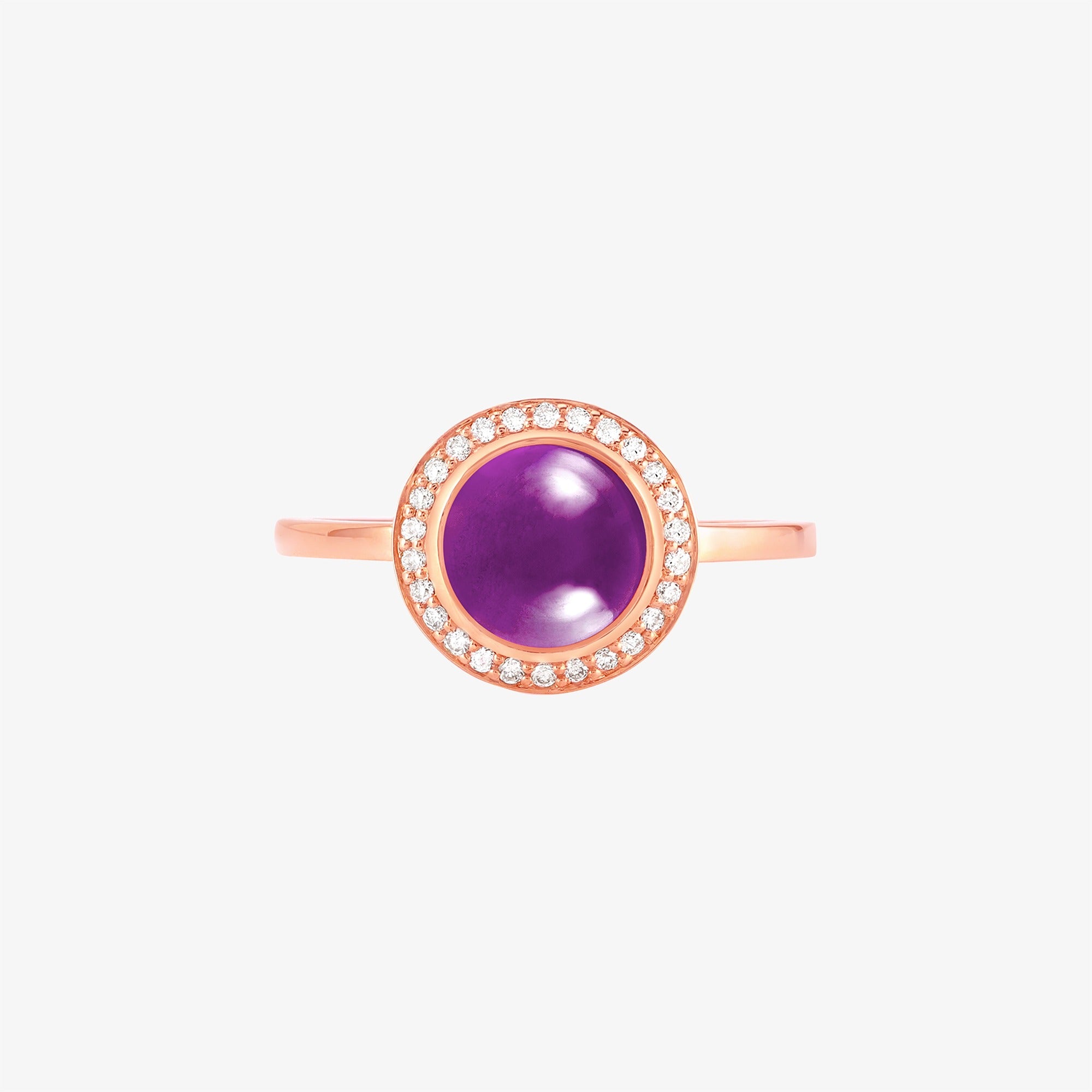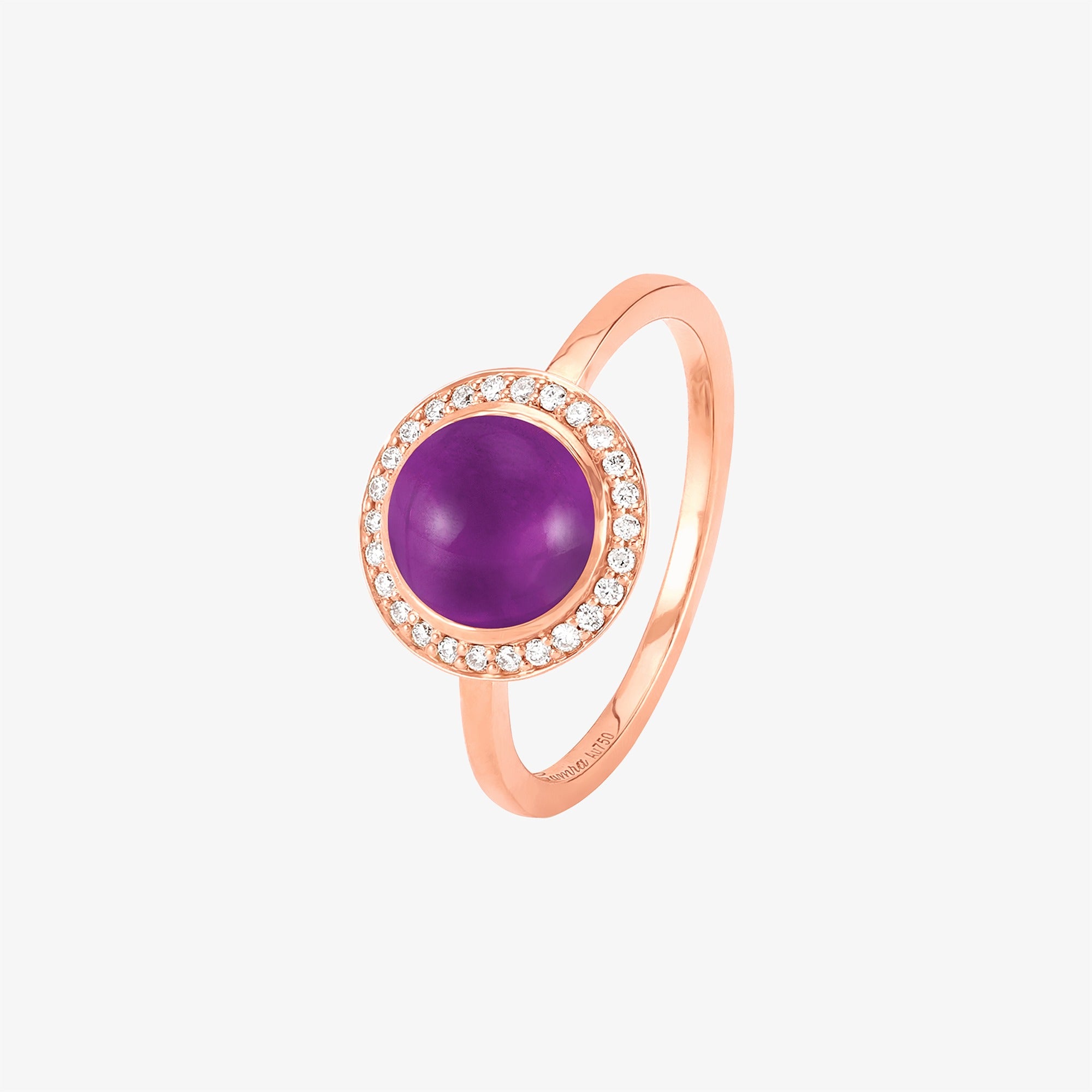 صُمّم هذا الخاتم من الذهب الزهري عيار 18 قيراط، ومن ماسات لمّاعة عيار 0.10قيراط وبحجر الاميتست عيار 1.45 قيراط
