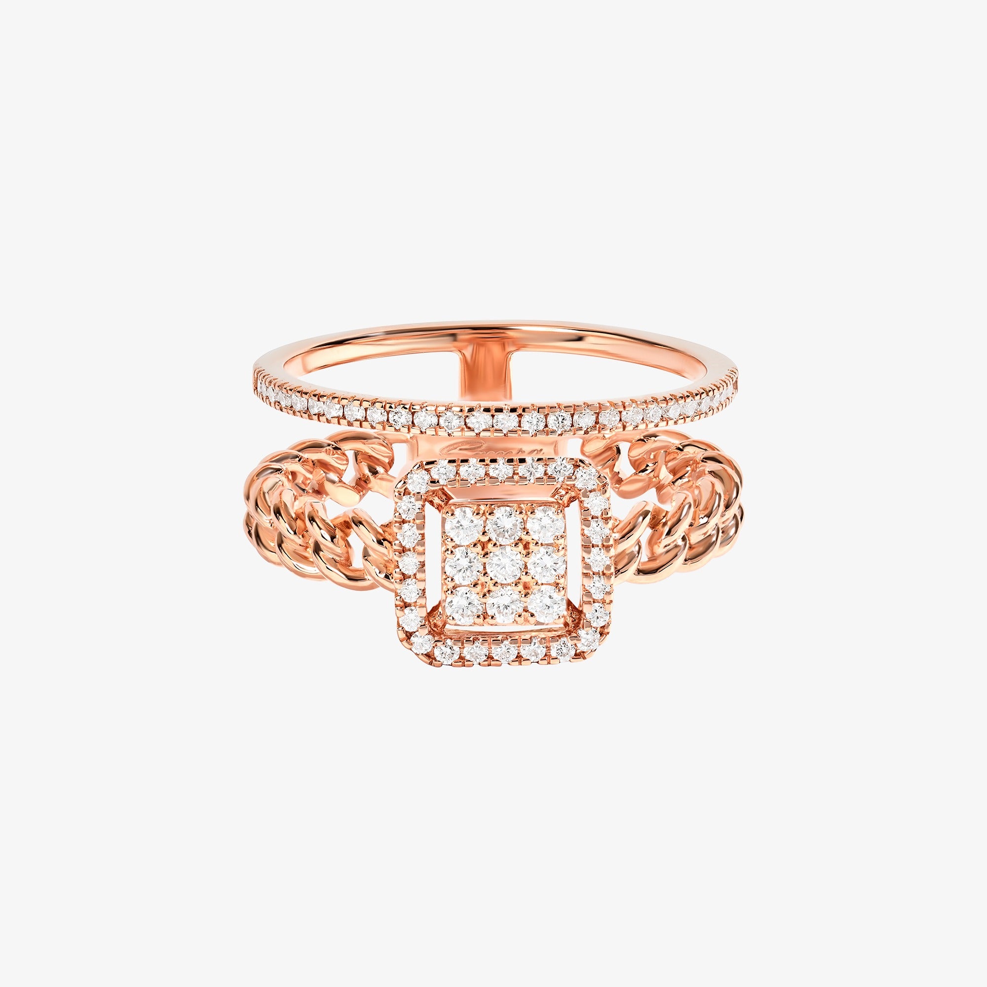 تأتي مجموعة مجوهرات قوةلتكون خير تعبير عن القوّة الداخلية، والحرية والقدرة. فتجسّد وتيرة المرأةالجرئية ونمط حياتها، وتظهر قوتها الداخلية وحركتها، بكل ما أوتيت من حرية، جرأة،وطاقة. صنع هذا الخاتم المزدوج من مجموعة قوة، يدوياً من الذهب الزهري اللون عيار18 قيراط ومن ماسات لمّاعة