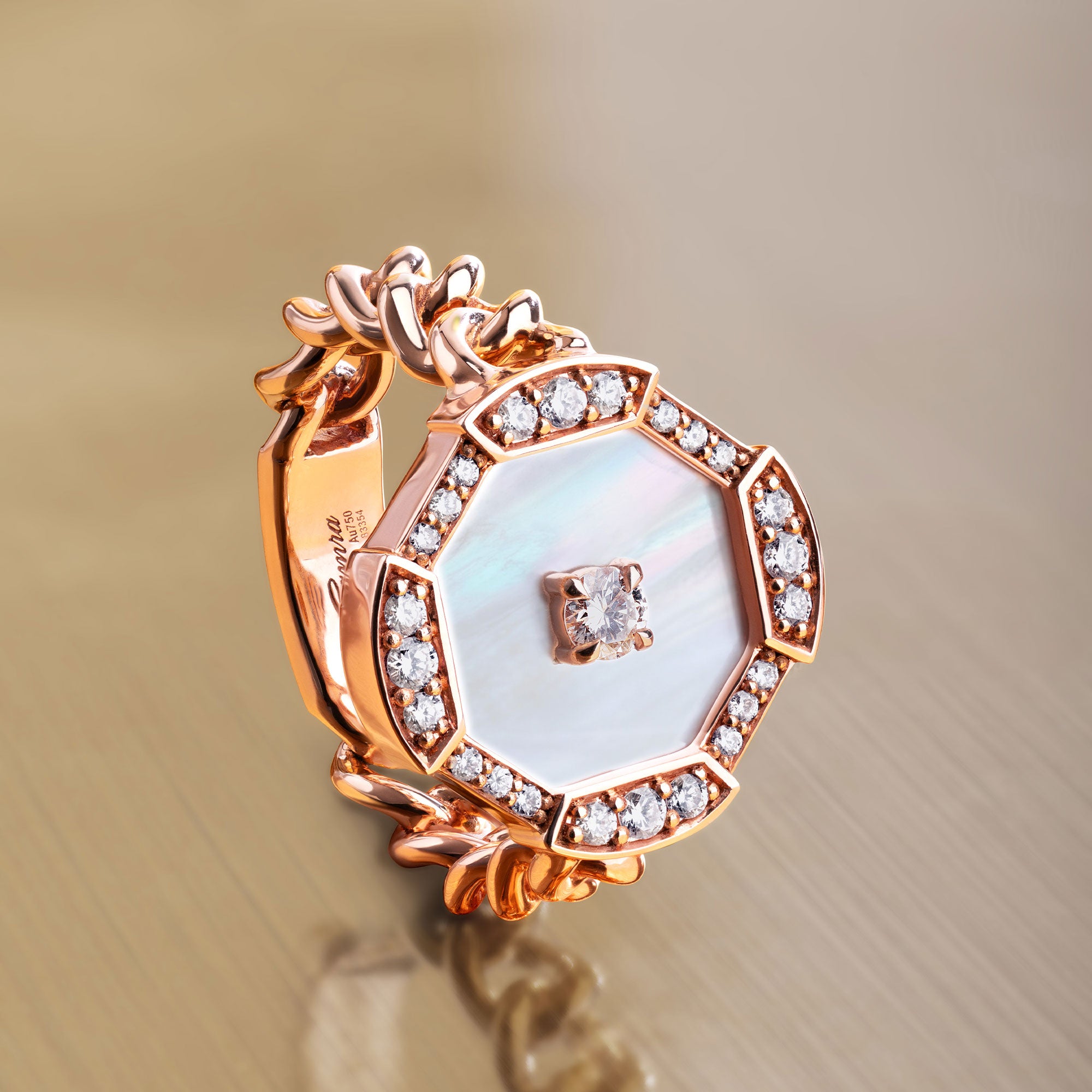 18K Rose Gold, Brilliant Diamonds, Mother Of Pearl
