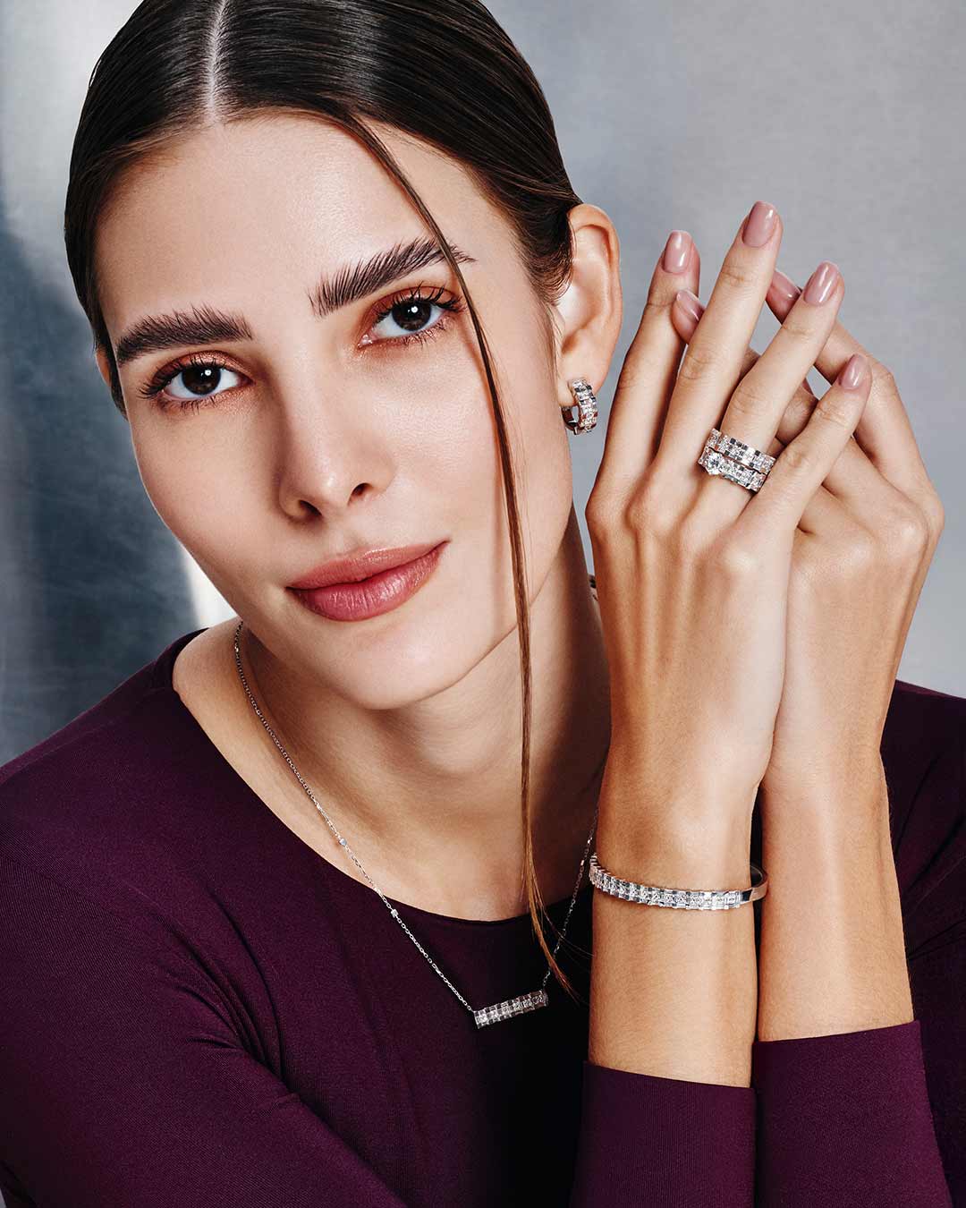 Splendore Collection is a revived icon from Samra’s distinguished design heritage, reimagining a signature structured grid motif with contemporary sophistication. Each piece is meticulously crafted with baguette cut and brilliant diamonds, arranged with architectural precision to create a bold, balanced and luminously radiant play of light. Expertly made in 18K white gold, Splendore brings together bridal elegance and modern artistry, resulting in a collection that feels both powerful and graceful. It celebrates devotion, feminine strength and the enduring brilliance of diamonds. Splendore is a modern classic reborn for the woman who embodies confidence, beauty and effortless radiance. Splendore Collection · A Modern Renaissance of Radiant Designs ·
