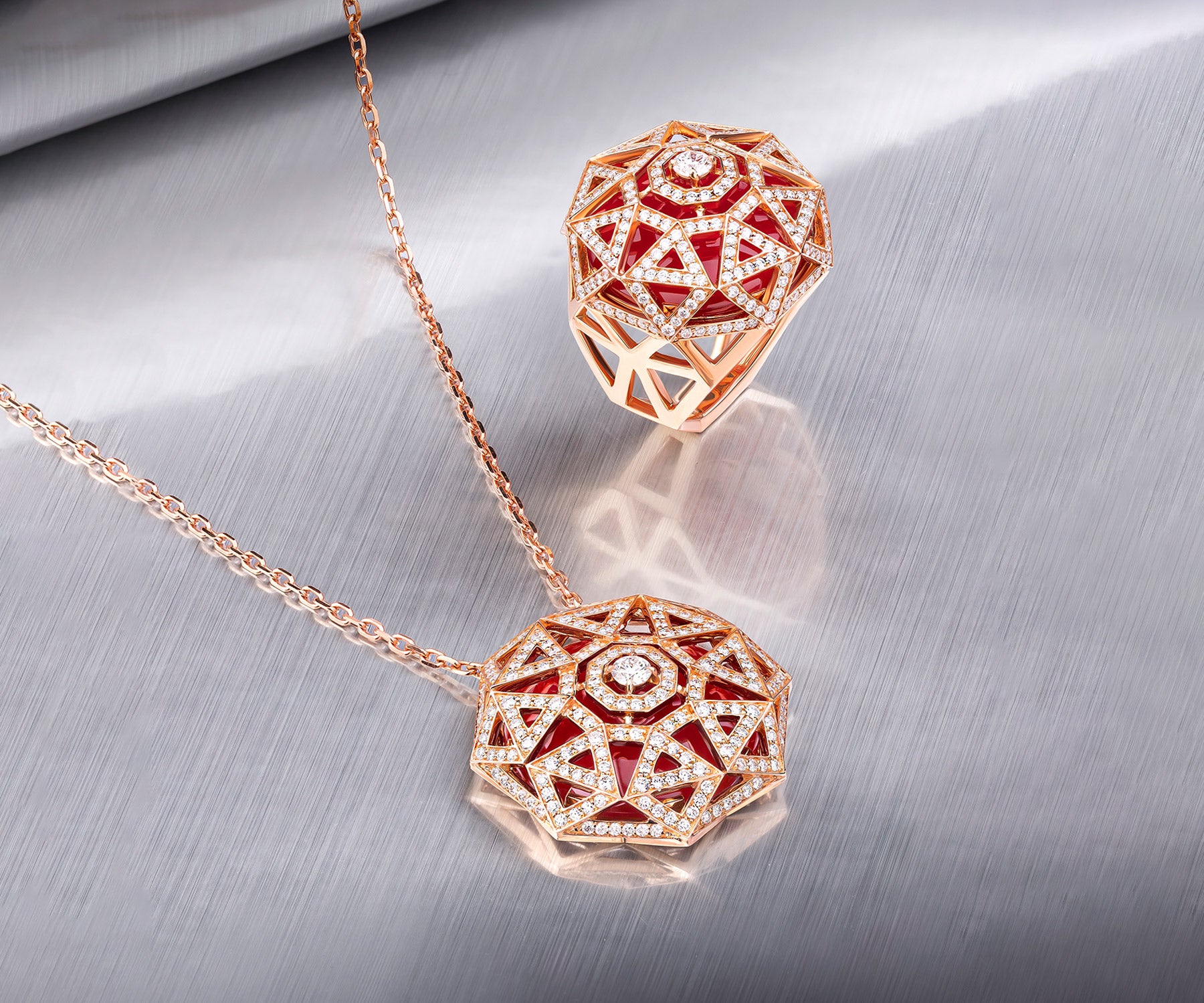 Inspired by regional art depicting history and heritage. The Turath Collection is a reinvention of classic artistry and a modern representation of transcribed art and geometry. Discover the Classic Turath Medallion Necklace in 18K Rose Gold set with Mother of Pearl inlay and Diamonds. Complete the look with stacking this Turath Medallion Necklace with other pieces from Turath Jewellery in the "Art of Stacking Turath."